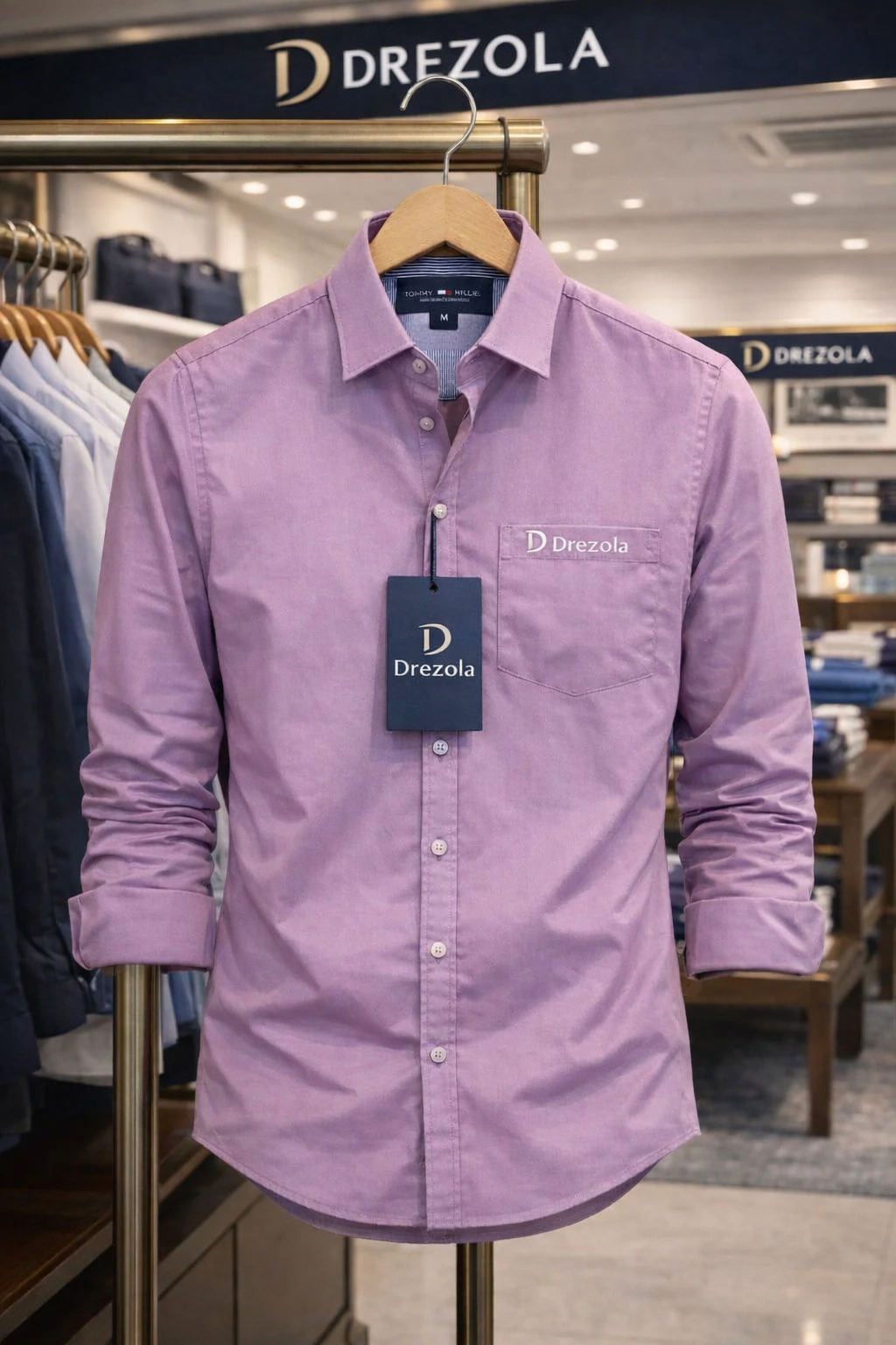 Featuring a classic button-down front, full sleeves, and a sharp collar, this shirt delivers a clean and polished appearance. The subtle Drezola logo on the chest adds a touch of luxury branding without overpowering the design. Whether you’re heading to a business meeting, evening event, or a special occasion, this shirt ensures you stand out with effortless elegance.